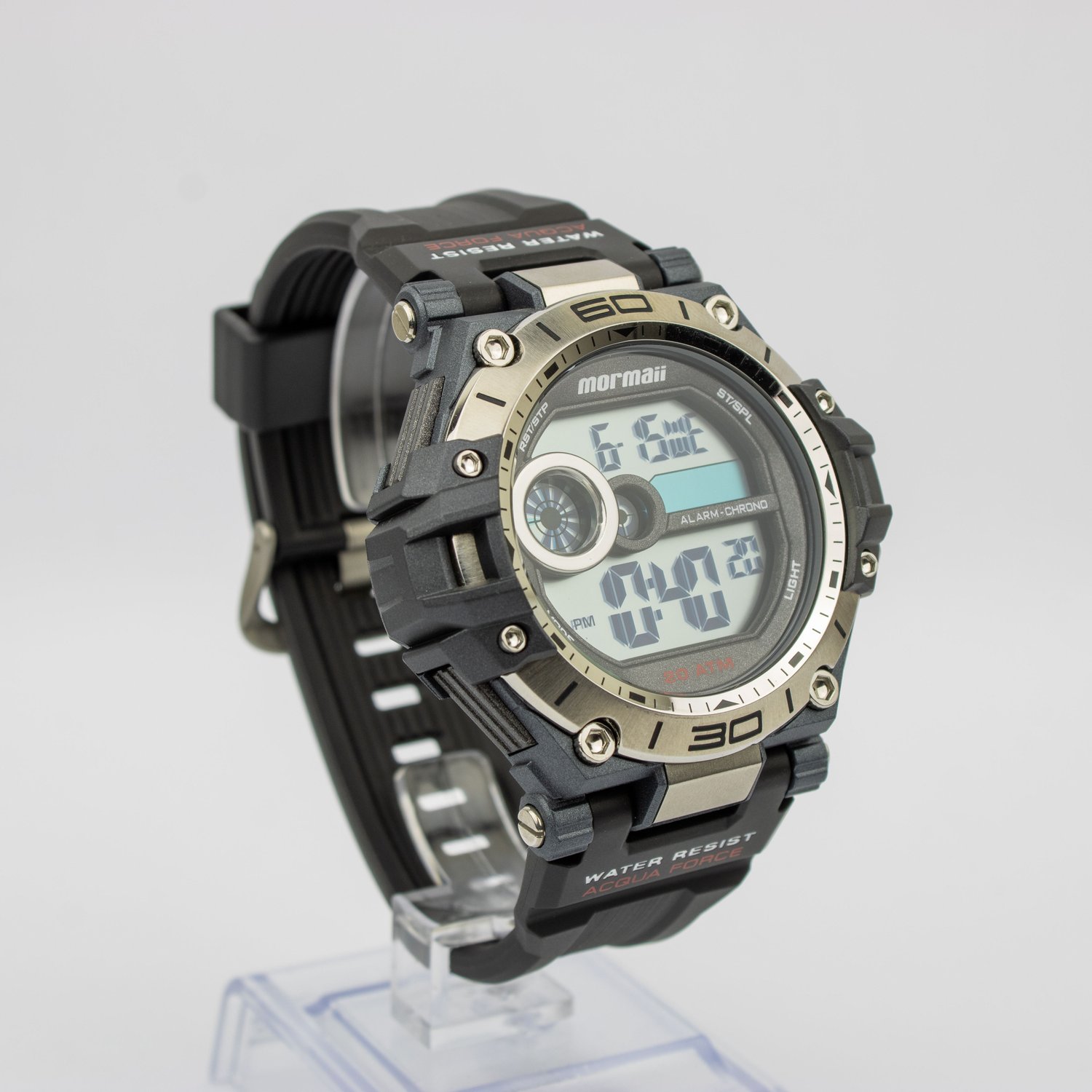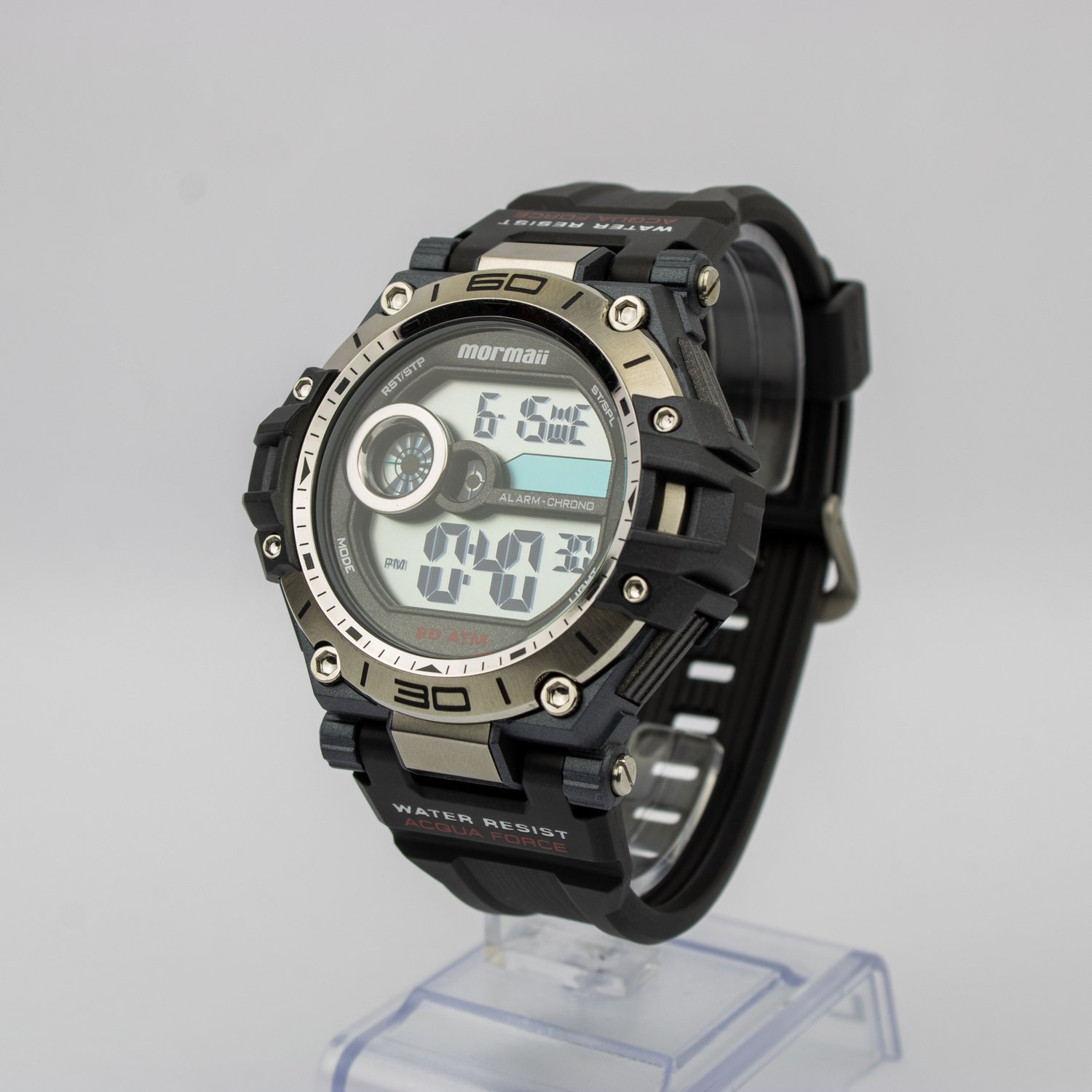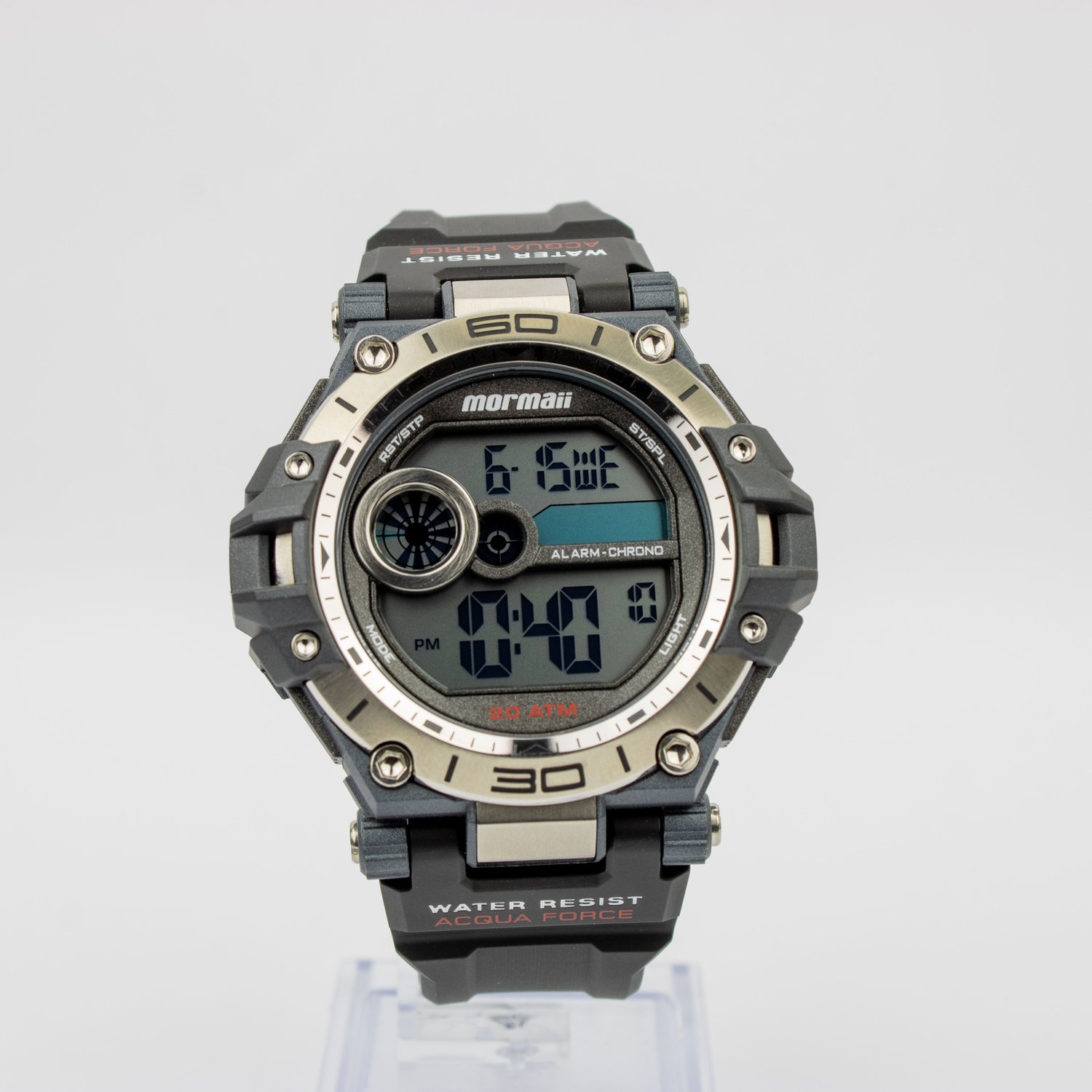 Apresentamos o relógio masculino Mormaii, referência MO14073AA. Com caixa em resina e pulseira de borracha na cor cinza, seu design imponente possui diâmetro de 53mm e espessura de 17mm. O mostrador cinza destaca o relógio, enquanto o acrílico protege. Resistente à água até 200m, garantia de 1 ano. Acompanha estojo. Sofisticação e funcionalidade em um único acessório.